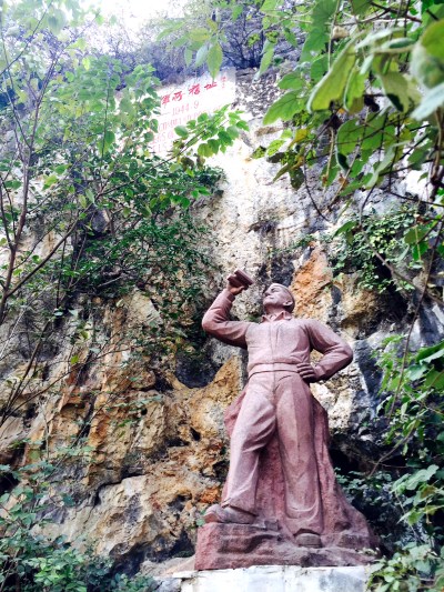 When I leave the building, I continue to the back of the park where there is a cave and viewing point — it’s where the commander of the Tigers, General Chennault, would watch the air battles. But the path is blocked off with yellow “Keep Out” tape. I see a gardener working there. I show him the Google translation, and without a moment’s hesitation, he moves the tape for me.