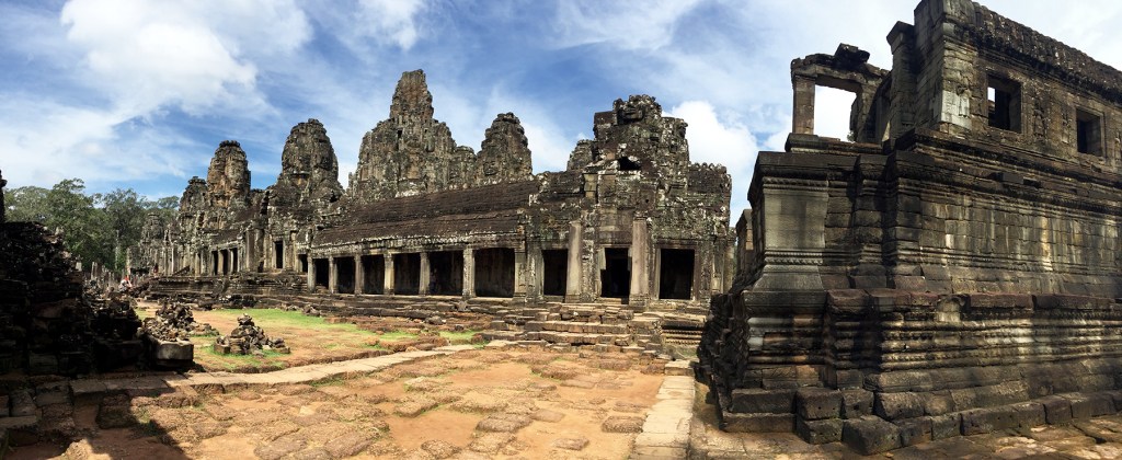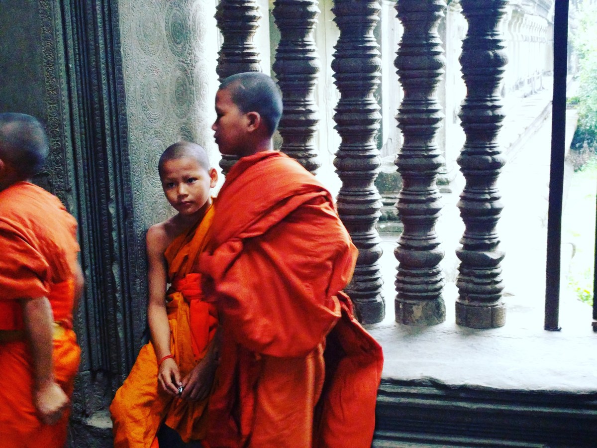 With the sun well up now, we wander through the misty morning light to explore several of the ancient temples on our way to breakfast in a small hut, again far removed from the crowds. We pass the astounding temples built for the Khmer Empire in the 12th century that in large part — considering their age — have refused to yield to time, the environment, or war. We see throngs of tourists, many of whom are dressed appropriately, and dozens of young monks — I’m almost as entranced by them as I am by the site itself.