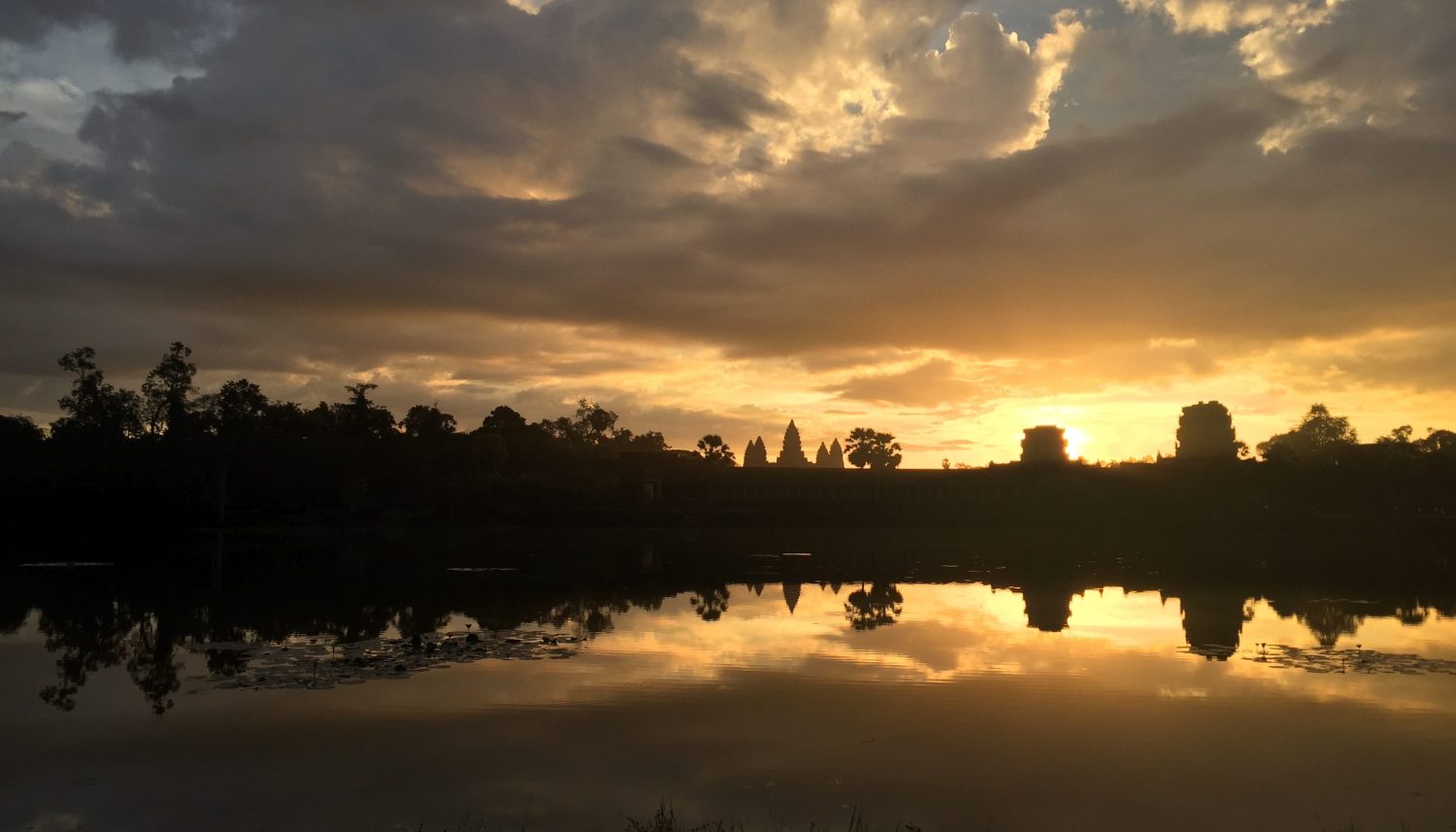 When we board our van, we meet our cohorts for the day: a family of three originally from Sweden and who now live in Bangkok, and a woman from Florida. Our guides are lovely and quite soft spoken, which is a welcome volume at this time of morning. The lead immediately starts explaining the itinerary for the day. We will begin by watching the sunrise over the iconic temples of the largest religious monument in the world.
