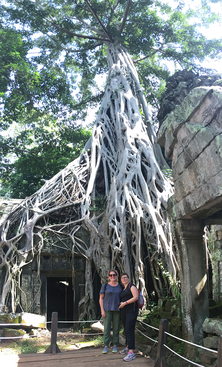 I’m realizing the real beauty in this tour is that the guide can take us places other tourists can’t go, so our experience is peaceful and not overwhelmed by crowds, at least not until Ta Prohm, the “Tomb Raider temple.”